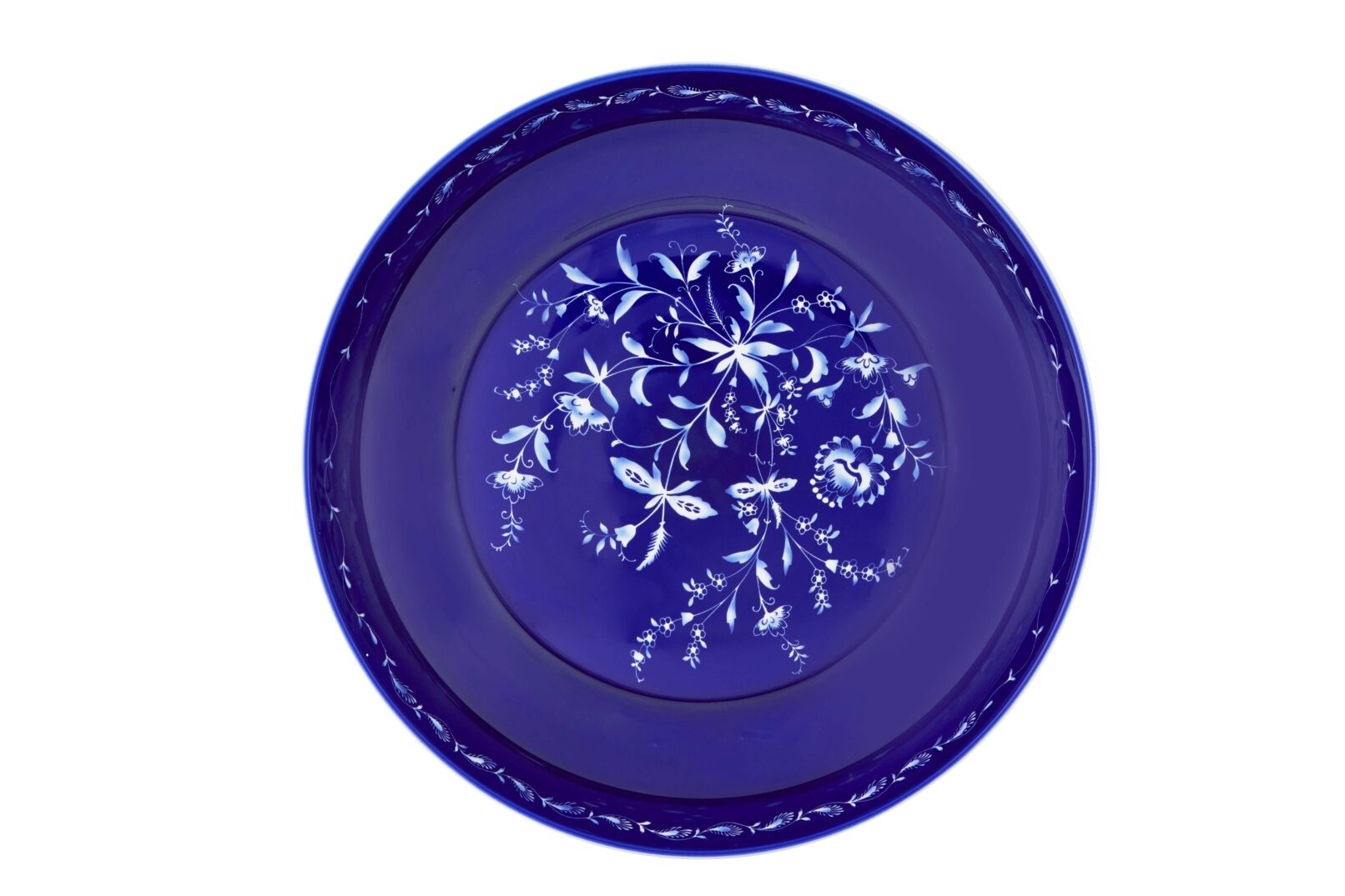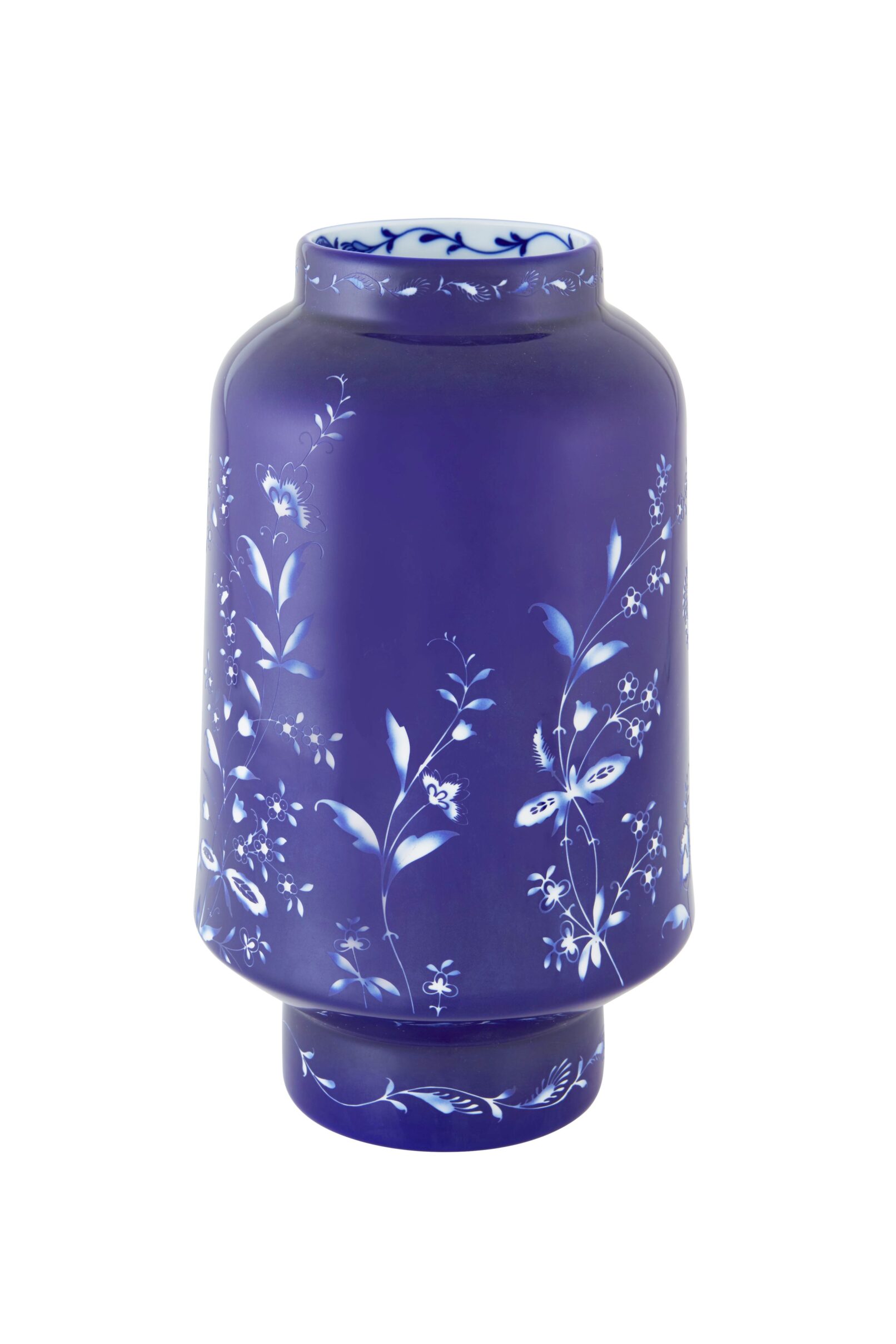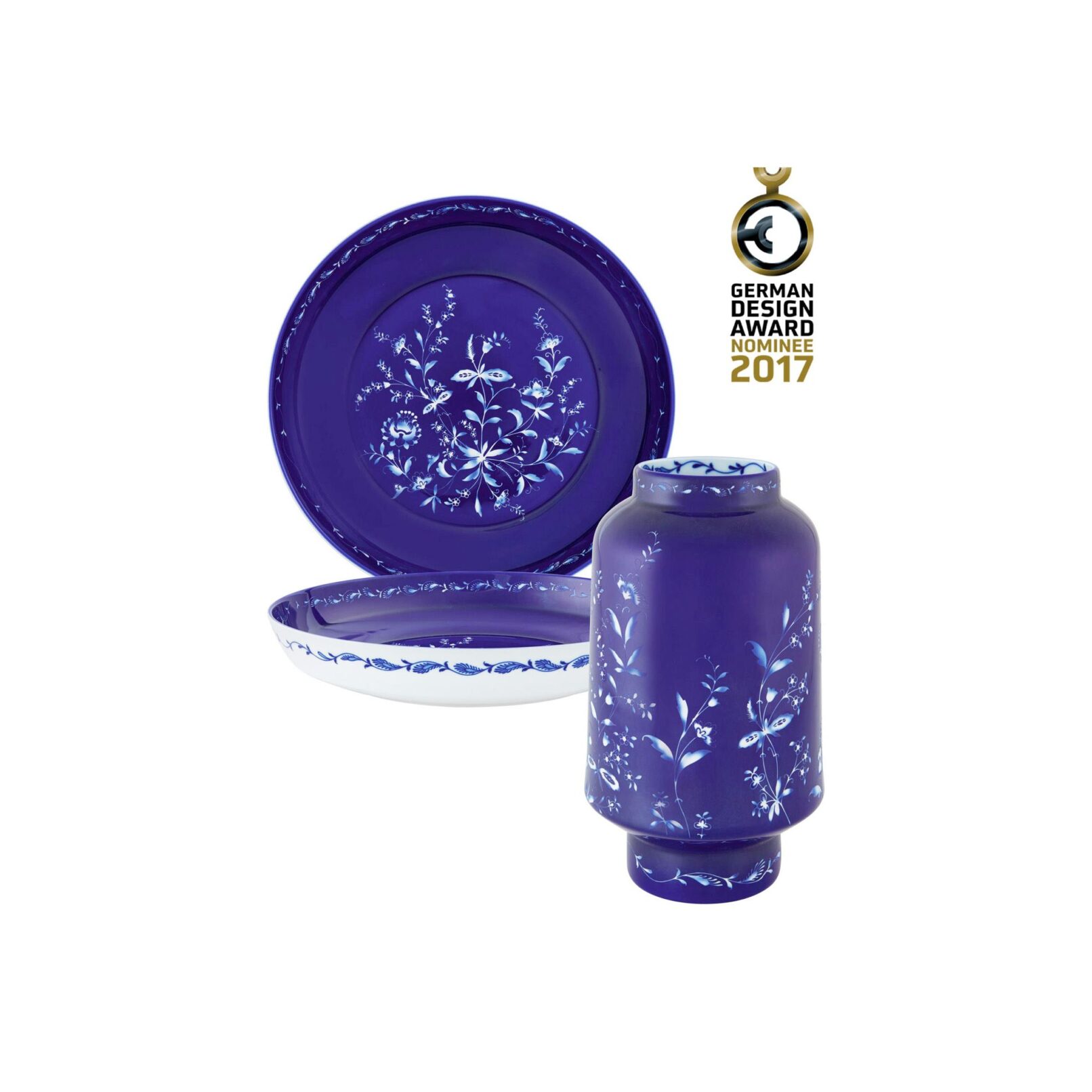 Porcelain with cobalt blue decorations and sandblasted elements