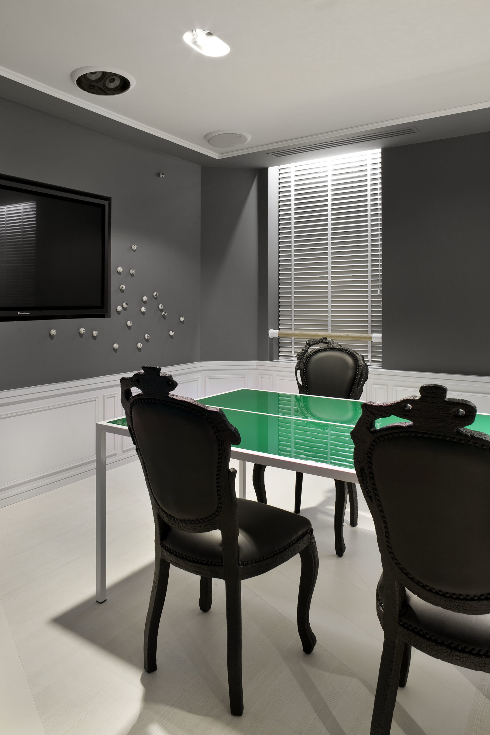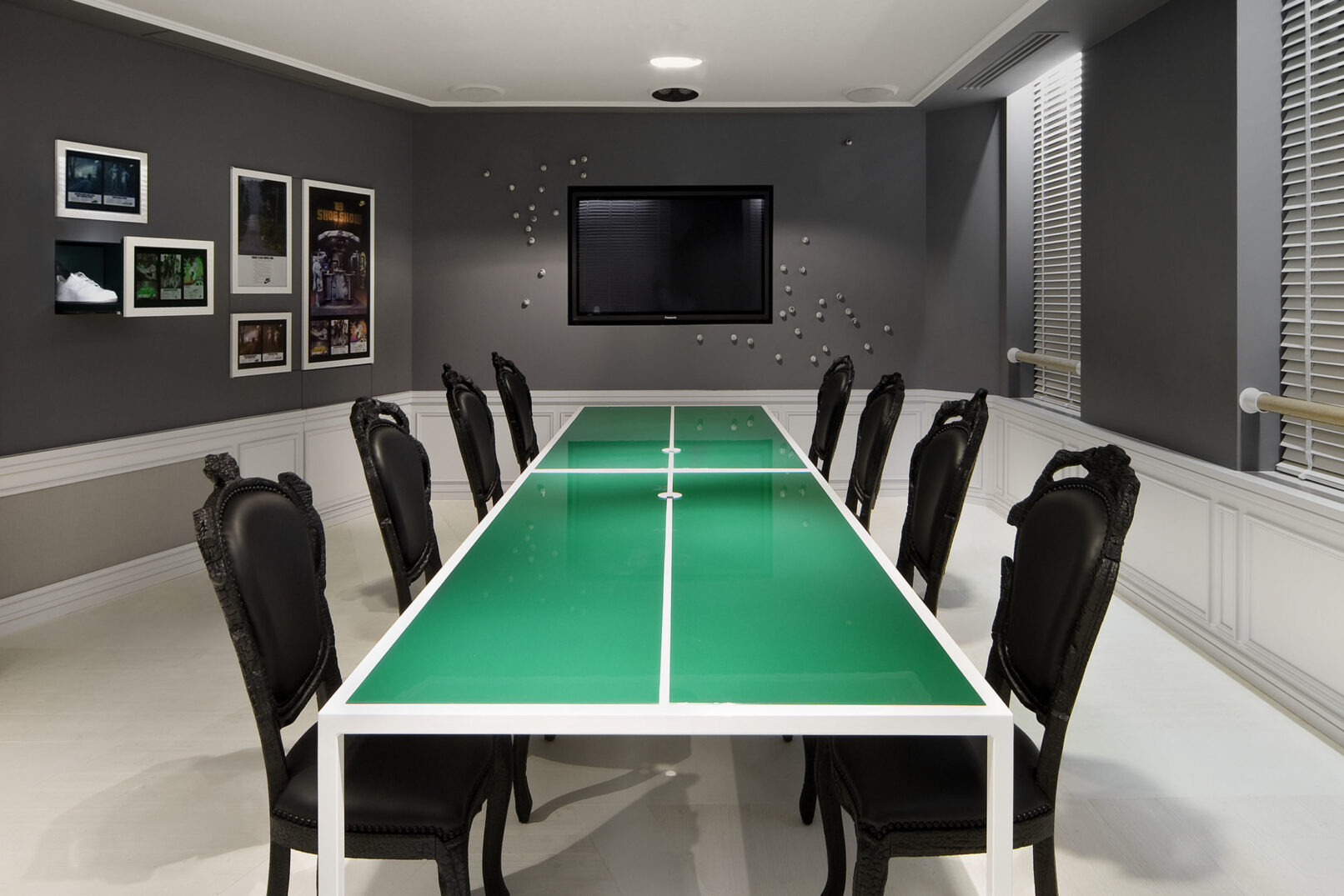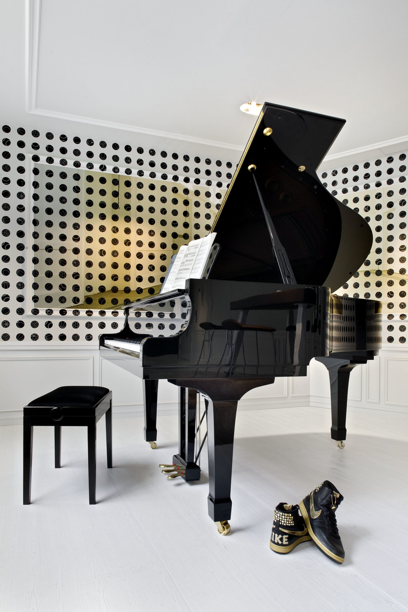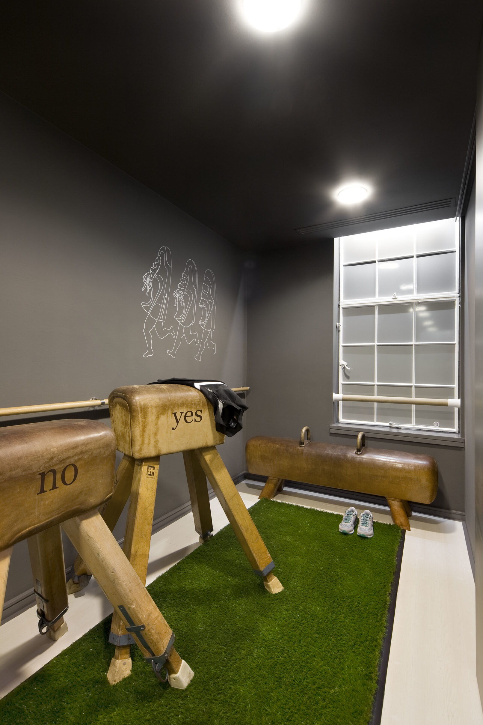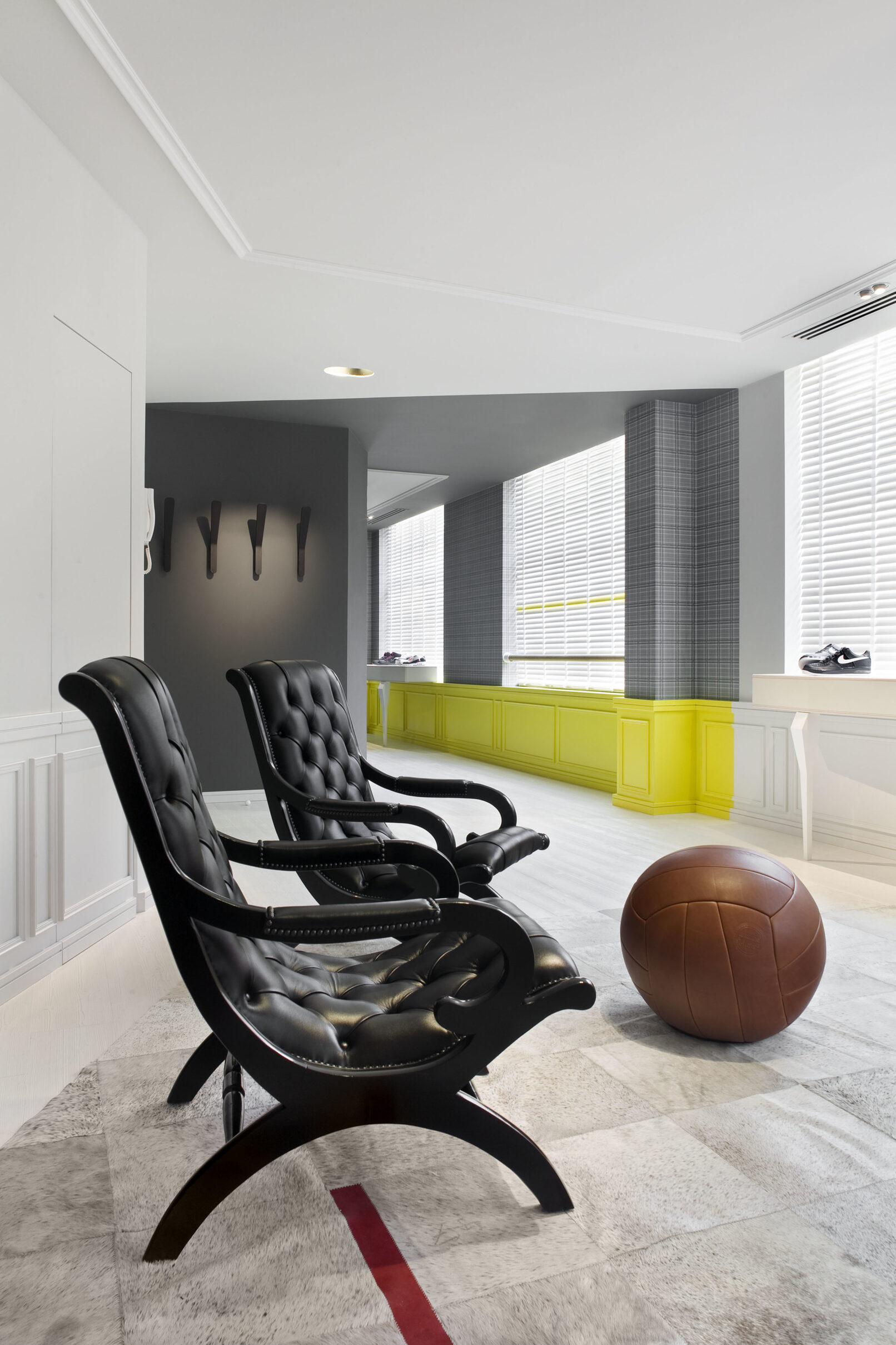 In a ritualised encounter the special guests receive individually designed pieces of sports gear as gifts. So, COORDINATION created many secret drawers and hidden places within the interior and bespoke pieces of furniture as beautiful and intriguing presentation opportunities.