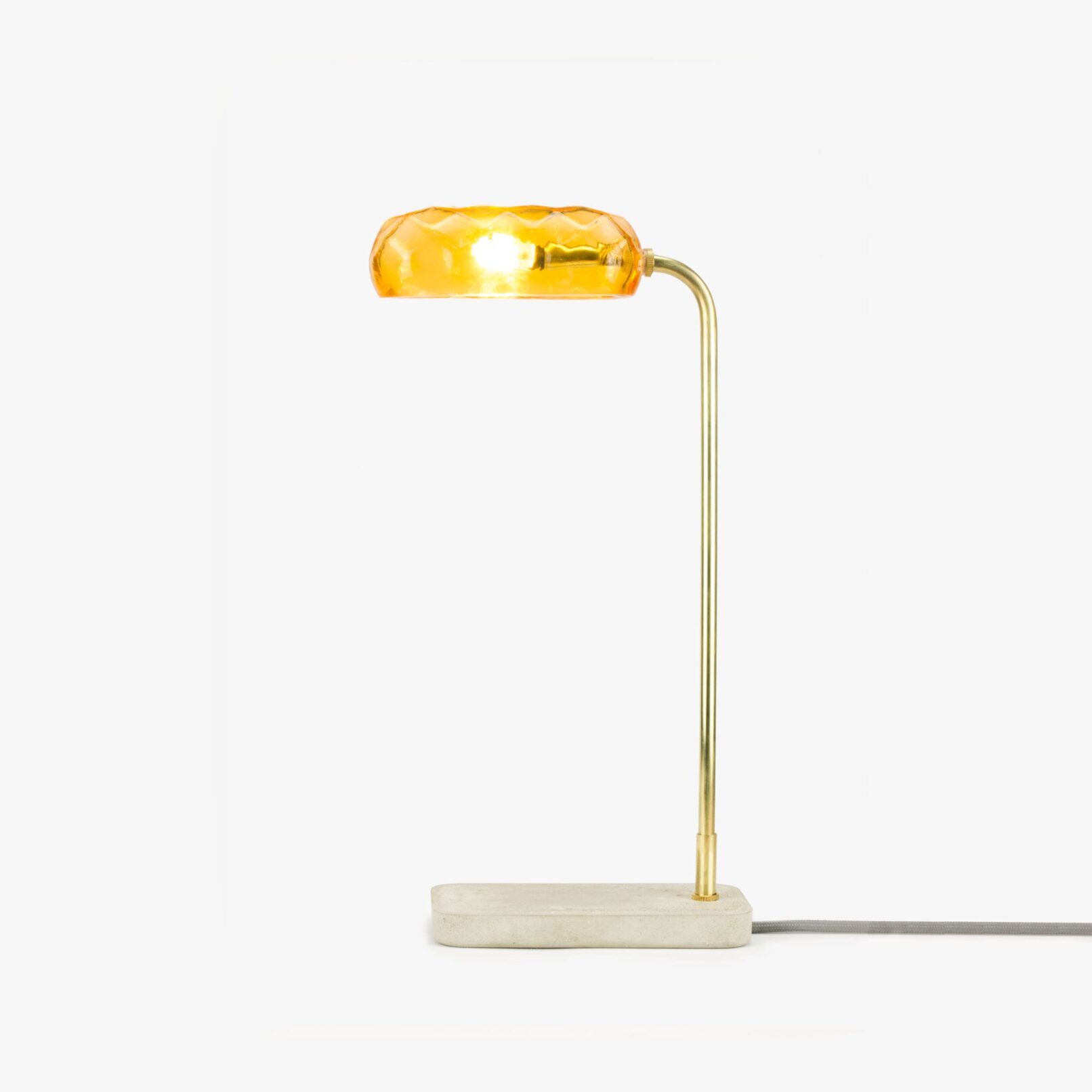 Mounted on a thin brass tube, this minimal lamp stands like reeds growing along rivers. This sleekness is enhanced by a cast concrete base. Thanks to its different mouth blown glass shades, the reed glass lamp can easily fit in a variety of situations.